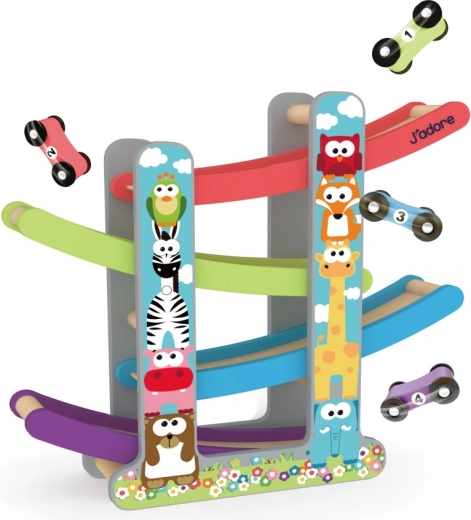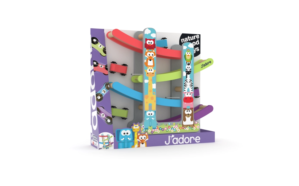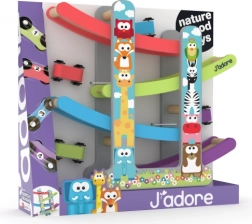 J'adore bilbanesæt er et perfekt, lærende legetøj til små racerkørere. Det er fremstillet af økologisk bæredygtigt træ og uden skadelige kemikalier, og er ideelt til børn fra 18 måneder. Børn kan lade de farverige biler ræse og udvikle deres færdigheder på en sjov måde.