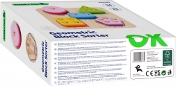 Den geometriske træsorter TOOKY TOY er et ideelt læringsredskab for små opdagere. Fem pæle og farverige former (cirkler, trekanter, firkanter, rektangler og femkanter) lærer børn at skelne mellem former, farver og mængder. Hver brik skal passe på den rigtige tap, hvilket på en sjov måde styrker logik, tålmodighed og finmotorik.