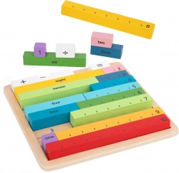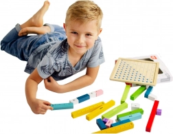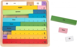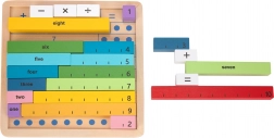 Legetøjet er ideelt for begyndere, der allerede kender cifrene og har brug for at øve regning, addition og subtraktion. Sikkert, glat forarbejdet træ og giftfri farver garanterer sikker leg. Efter legen kan alle dele lægges tilbage i pladen, så alt altid er samlet.