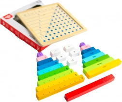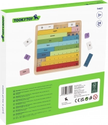 Opdag en sjov måde at bringe matematik tættere på børn: TOOKY TOY træplade med farvede klodser og symboler lærer at regne, lægge sammen og trække fra. Med visuelle elementer og høj kvalitet udvikler den logisk tænkning, finmotorik og grundlæggende matematiske færdigheder. Alt opbevares i en overskuelig træplade – orden og læring i ét.