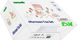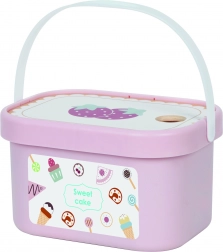 Der medfølger også sødt service – kopper, teskeer, gafler og kniv – samt en robust plastboks med hank til nem opbevaring og transport. Pastelfarver og glatte, børnesikre dele indbyder til leg for én eller hele gruppen.