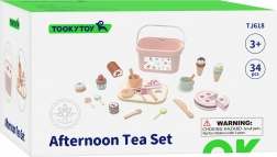 Dette kvalitets træ-sliksæt tilbyder alt til stilfuld eftermiddagste: skærekage, rullekage, donut, småkager, makroner og is. Børn træner finmotorik ved at skære i portioner og arrangere på bakken, og udvikler fantasi og kommunikation under leg med konditori eller teselskab.