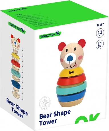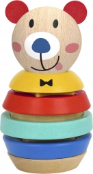 Træpyramiden med bjørn kombinerer leg og læring. Farvede ringe, stjerner og andre former stables på en pind og i de rigtige positioner, hvilket understøtter logisk tænkning og rumlig forestillingsevne. Børn tilegner sig på legende vis sortering efter form, farve og størrelse.