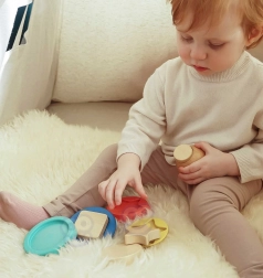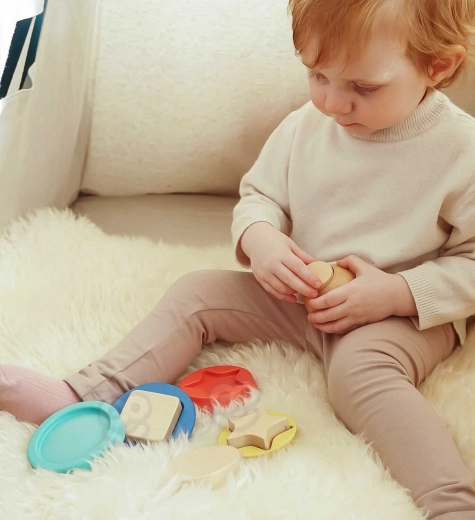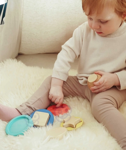 Barnet lærer legende at skelne mellem farver, former og størrelser og udvikler logisk tænkning og tålmodighed.