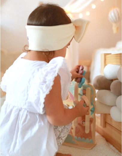 Takket være den robuste udførelse i naturligt træ og ugiftige, vandbaserede farver er legetøjet sikkert og holdbart til daglig leg. Det understøtter finmotorik, hånd-øje-samspil, fingerfærdighed og fantasi og motiverer børn til tålmodighed og koncentration.