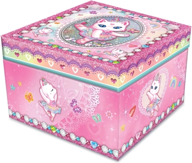Opbevar dine skatte i det smukke smykkeskrin med motiv af en katte balletdanserinde. Når det trækkes op og åbnes, begynder det at spille smuk musik.