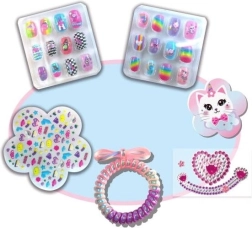 Det store neglesæt til børnestudie giver masser af sjov og kreativitet. I pakken finder du selvklæbende farvede negle, en neglefil, dekorative sten og en spiralscrunchie – alt sammen egnet til børn op til 6 år.
