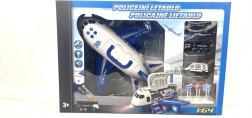 Politi fly med lastområde og 3 biler er et fantastisk legetøjssæt til børn. Det indeholder et fly med lys- og lydeffekter og tre metalbiler i skala 1:64.<\div>