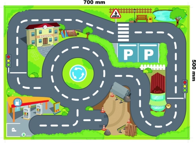 Oplev gader og kryds med Kiddy Go! legesættet, der kombinerer farverige biler og en måtte med byens vejnet. Børn kan straks tage på tur, ræse om kap og stoppe ved imaginære lyskryds, mens de naturligt udvikler deres færdigheder.