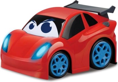 Den røde sportsvogn Kiddy Go! med en længde på 19 cm vil glæde små racerkørere. Den tilbyder lys- og lydeffekter aktiveret med en knap, har frihjul for jævn kørsel, og i pakken finder du 2× AA-batterier. Velegnet fra 18 måneder.