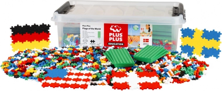 Plus-Plus boks Flag bringer et rigt udvalg af byggeklodser til at skabe farverige motiver og nationalflag. Takket være brochuren med konkrete skabeloner og opgaver kan børn nemt gå i gang med en leg, der styrker finmotorik, logisk tænkning og kreativitet.