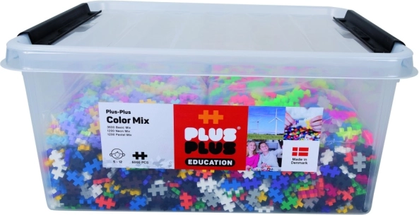 Opdag uendelige muligheder for kreativ konstruktion med Plus-Plus opbevaringsboks, som indeholder i alt 6000 dele i basisfarver, neonfarver og pastelfarver. Den praktiske boks med låg er ideel til grupper, børnehaver og skoler, og der medfølger en opgavebrochure til børn. Fremstillet i Danmark af genanvendt plast, uden ftalater og med nem vedligeholdelse.