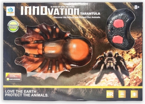 En sjov og realistisk RC-tarantel, der vil begejstre både små og store fans af insekter og uhyggelige legetøj. Edderkoppen kører frem, tilbage, til siderne og drejer, har lysende øjne og er med infrarød fjernbetjening med rækkevidde op til 8 m ideel til leg derhjemme. Legetid op til 20 minutter på ét batterisæt. Velegnet til børn fra 6 år.