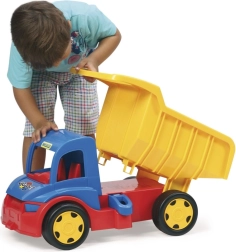Leg med Børnelastbil Gigant 55 cm fremmer børns fantasi, udvikler manuelle færdigheder og koordination. Til fremstillingen af dette legetøj er der anvendt højkvalitets og sikre materialer, der opfylder europæiske standarder. De forskellige farveelementer hjælper børn med at udforske farvernes verden.