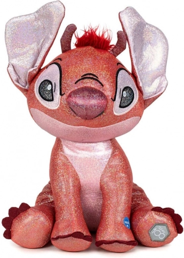 Interaktiv plysbamse Leroy fra kollektionen Disney 100 Anniversary med glitrende look og lydeffekter. Plysbamsen Stitch giver sjove lydeffekter ved tryk på venstre hånd.