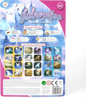 Opdag en magisk verden med en praktisk 2-i-1-legeting – en lommelygte og projektor med motiver af enhjørninger. Projekter op til 24 farverige billeder på væg eller loft og skab fængende historier fulde af fantasi. Den lyseffekt giver projektionen en unik atmosfære – ideel til små drømmere og enhjørninge-elskere.