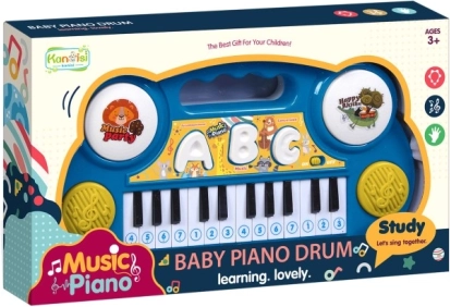 Det musikalske klaver for de mindste byder på lyseffekter, sjove instrumentlyde, dyrelyde og glade melodier. Med de enkle knapper A, B og C kan børn nemt skifte funktioner og udforske musikkens verden. Støtter fantastisk udviklingen af hørelse, rytme og kreativitet.