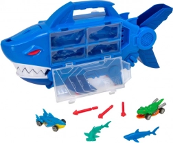 TEAMSTERZ hajgarage kombinerer actionleg, opbevaring og transport. Indeni gemmer der sig en drive-thru-rampe, hvor bilerne kører direkte gennem hajens kæber. Den integrerede projektil-affyrer på hajens hoved giver hvert løb en ordentlig dosis adrenalin.