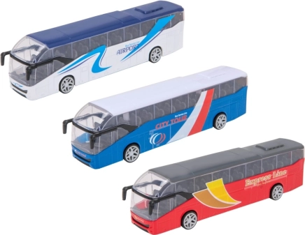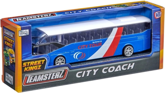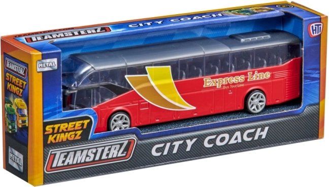 Teamsterz bybus City med åbningsdøre og bevægelige hjul. Tre motiver, realistiske detaljer, ideel til børn fra 3 år.