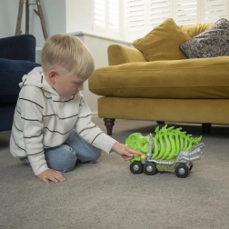 Skub bilen fremad og se, hvordan T‑Rex automatisk åbner sine kæber for en actionfyldt effekt.