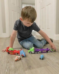 Trailer og småbiler har et unikt dinosaurdesign, som stimulerer børns fantasi.