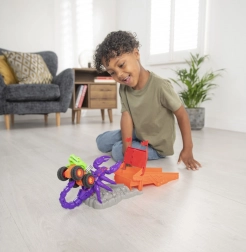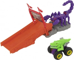 Sættet indeholder en orange rampe og en lilla forhindring i form af en skorpion, der sikrer fantastisk sjov og eventyr.