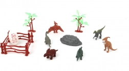 dinosaurfigurer, planter og andet tilbehør (fx små træer, klippe, indhegning)