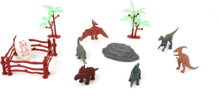 Sættet indeholder 10 forskellige dinosaurer med detaljerede former og teksturer. Børn kan nemt skelne mellem arterne og skabe deres egne historier fra forhistorisk tid.