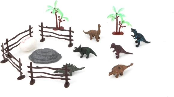 Pakken inkluderer også rekvisitter som små træer, en klippe og en indhegning, så du kan opbygge en lille forhistorisk verden og udvikle kreativiteten under legen.