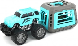 • Komplet sæt: terrængående bil, trailer/bur og dinosaurfigur