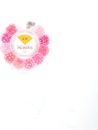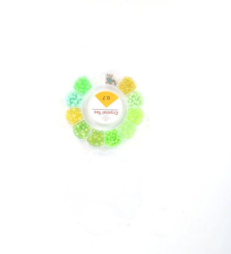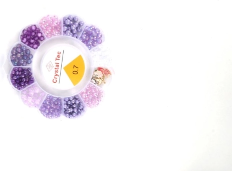 Den runde dispenser med rum holder perlerne sorteret efter farver og størrelser, så du har alt lige ved hånden, og arbejdet flyder let.