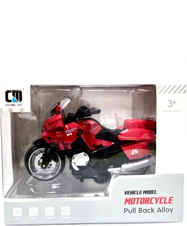 Denne røde racermotorcykel med pull back-funktion giver fantastisk underholdning for små racerkørere! Træk den blot tilbage og slip, så kører den af sig selv.