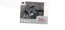 Denne imponerende motorcykel er enhver lille racerlovers drøm. Træk den bagud og lad den køre af sig selv. Den løfter enhver leg og vil med sin fart glæde enhver lille racerkører.