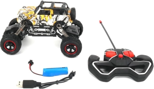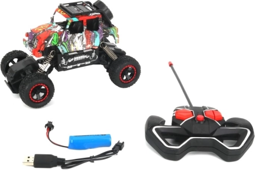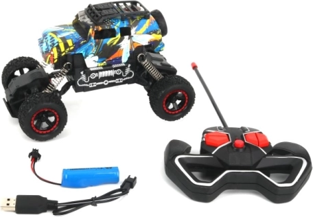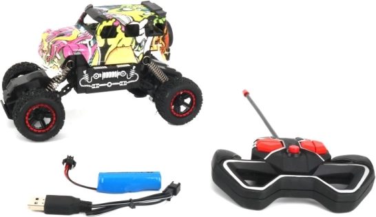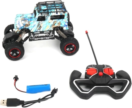 Vi præsenterer en RC terrængående bil designet til alle, der elsker fart og spændende løb. Dette køretøj, tilgængeligt i seks unikke designs, tilbyder alsidige funktioner inklusive kørsel frem og tilbage samt drejning til højre og venstre.
