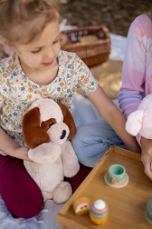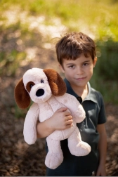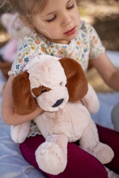 Med 41 cm er denne plyshund perfekt, så dine børn kan tage den med i sengen eller på farten.