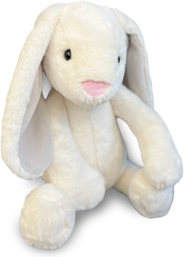 Denne søde cremefarvede plysbamse kanin er den ideelle ledsager for alle, der nyder blødhed og komfort. Med en størrelse på cirka 41 cm er den stor nok til at give trøst og varme ved kram.