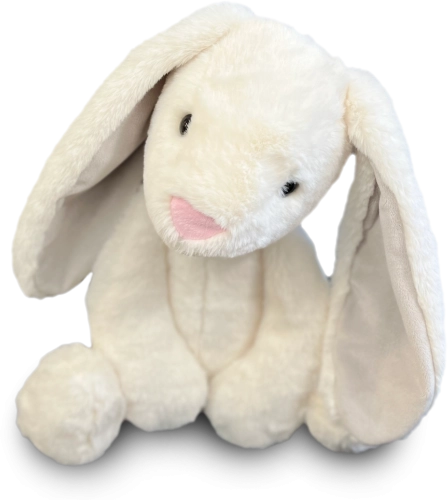 Køb en cremefarvet plysbamse kanin - ideel til krammer, blød og elegant ledsager til rejser.