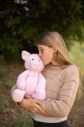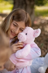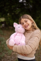 Denne plysbamse gris er designet specielt til børn, der søger en legetøjskammerat til fantasifuld leg eller blot en følgesvend på deres eventyr. Den let kompakte størrelse sikrer, at dit barn vil have den med overalt.