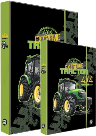Et praktisk sæt af hæftebokse i formaterne A4 og A5 med traktormotiv beskytter dine materialer mod krøl og snavs. Takket være det robuste laminat og elastiklukning er hæfter, papirer og skoleudstyr altid sikkert opbevaret.
