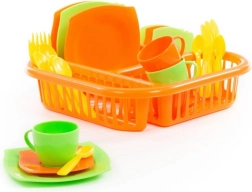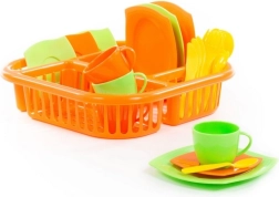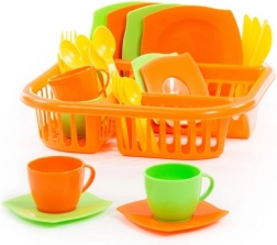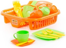 Pakken indeholder forskellige typer service, herunder tallerkener, kopper, bestik og selvfølgelig et opvaskestativ, der tilføjer en dosis realisme til ethvert køkken. Det er ikke nødvendigt at tørre op, bare lad det dryppe af, mens børnene nyder deres yndlingsdrik.