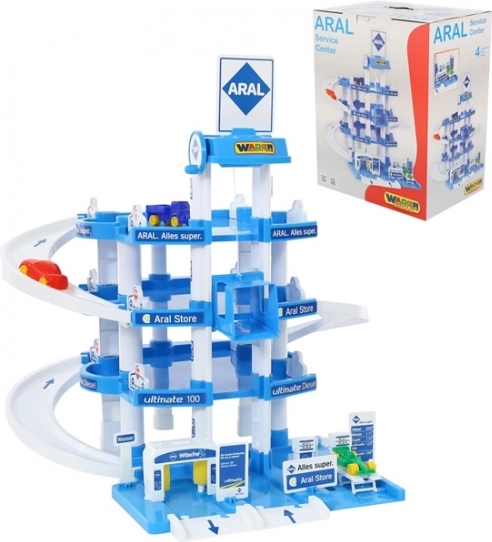 Aral firenetagers parkeringshus vil glæde enhver lille bilentusiast. Dette sjove parkeringshus tilbyder en elevator, der nemt løfter bilerne til øverste etage, hvorfra de kan suse hurtigt ned ad vejen.