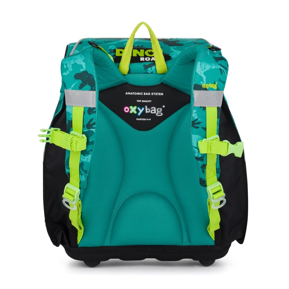 Let og behagelig skolerygsæk med dinosaurmotiv til de yngste skolebørn fra 121 cm. Med en vægt på kun 970 g, ergonomisk polstring og brede, polstrede stropper giver den maksimal komfort. Praktisk kapacitet på 26 l, magnetisk lukning, indvendig opdeler og reflekterende elementer for sikkerhed gør rygsækken til en pålidelig makker til både skole og fritidsaktiviteter.