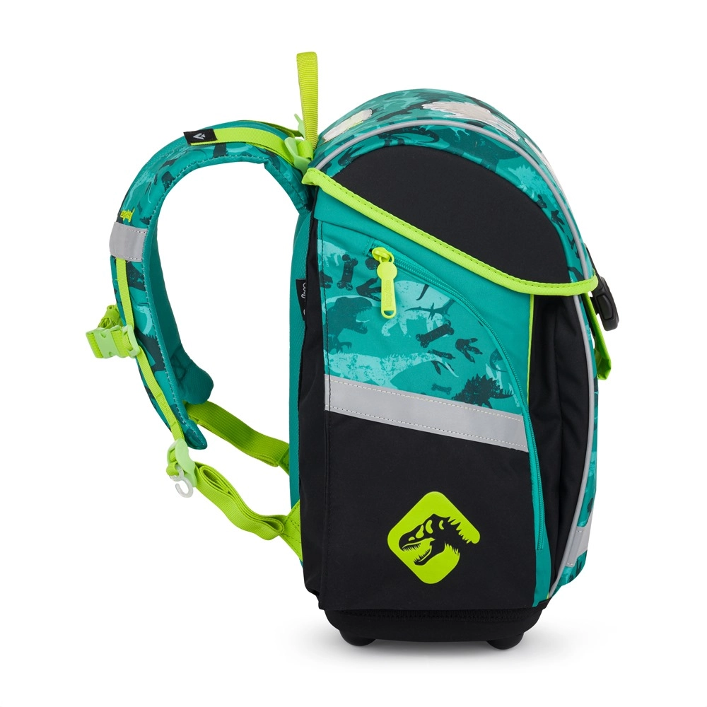 Skolerygsækken Premium Light Dino kombinerer en lettet konstruktion med smart organisering til hverdagsbrug i skolen. Åndbart polstret rygpanel og ergonomisk formede, brede og polstrede stropper fordeler vægten og sikrer behagelig bæring hele dagen. Tiltræks- og bryststropper hjælper rygsækken med at sidde perfekt på ryggen.