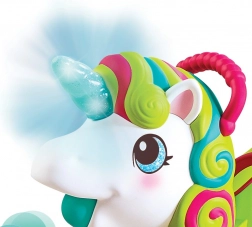 Sædet kan let løftes til gå-tilstand og klappes ned til kørsel; under sædet og foran er der plads til bolde. Enhjørningen kan samle spredte bolde og slippe dem ud på gulvet eller i kurven. Baghjulene har 2 hastighedsindstillinger til både begyndere og mere øvede. Det bløde horn lyser ved berøring, hvilket motiverer børn til interaktion og udforskning.