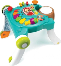 Under legen blinker 3 farvede LED-lys. Knapper i forskellige former laver muntre lyde, såsom percussion, tromme, raslende perler eller lyden af en travende hests klapren. Masser af idéer til sjov, der stimulerer barnets udvikling.