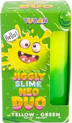 Jiggly Slime Neo Duo er et ideelt valg for både børn og kreative voksne. Dens unikke konsistens giver beroligende æltning, stræk og klem, mens den tofarvede gul–grønne kombination skaber en iøjnefaldende neon-effekt. Slimen er fantastisk til tricks, bobler og at skifte mellem hænderne.