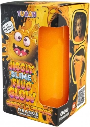 Denne unikke Jiggly Slime vibrerer behageligt og dirrer ved berøring takket være sin specialudviklede opskrift, samtidig med at den let kan strækkes i alle retninger. Den er ideel til lang tids klemning, at flytte fra hånd til hånd, strækning og bobleskabelse. Den fluorescerende pigment giver en dyb orange farve og en glow-in-the-dark-effekt for endnu sjovere leg.