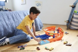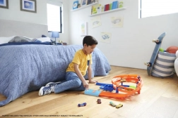 Banen bærer det legendariske Hot Wheels-logo og understøtter højhastighedsløb og akrobatiske tricks for børn fra 4 år.