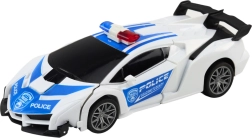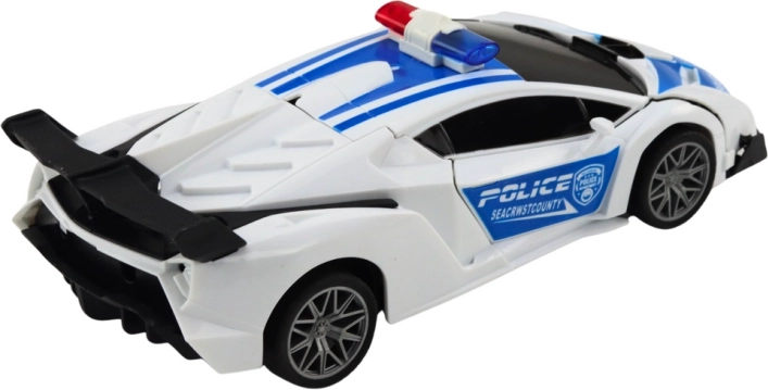 Denne stilfulde politibil i hvidt og blåt ligner en ægte patruljevogn – den har blinkende blålys, sirinelyde, og under kørslen kan den forvandle karrosseriet til en robot med løftende front. Når missionen er fuldført, skifter den tilbage til bil, så børn nemt kan veksle mellem to legemåder.