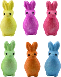Dette dekorative sæt indeholder seks charmerende harer i gul, blå, pink, grøn, orange og lilla. Overfladen med fine glimmerpartikler fanger opmærksomheden og understøtter forårs- og påskestemningen i enhver indretning. Takket være den lette styropor er pyntegenstandene nemme at flytte og sikre selv for børn.